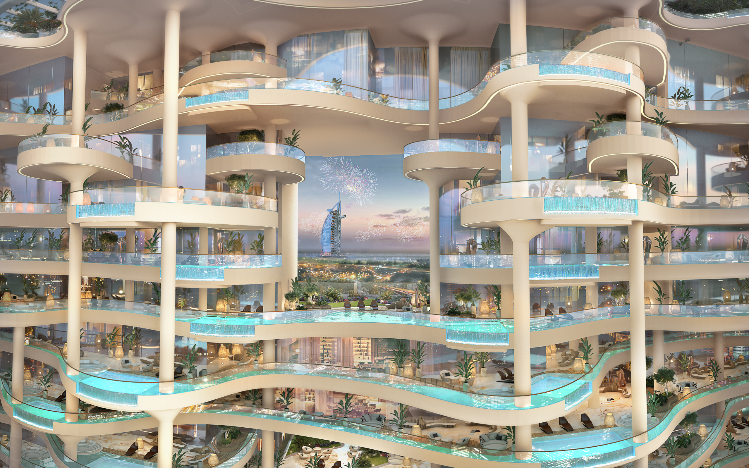 - Sunlit Groves and Rooftop Pool: Relaxation areas surrounded by greenery, along with a rooftop pool offering panoramic views of Dubai’s skyline.